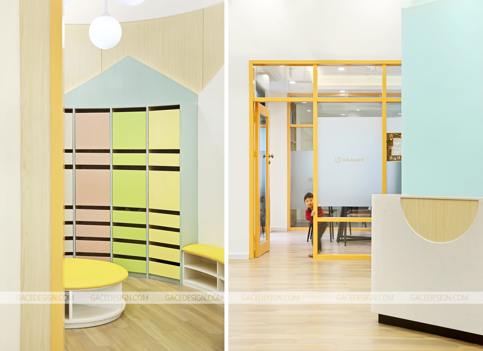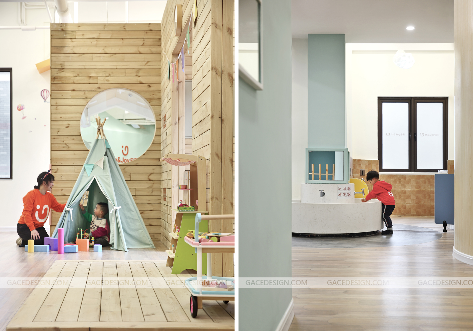 因樂國際兒童成長中心(In&Joy International Children Center)隸屬于因樂教育咨詢有限公司,是一家國際早托教育品牌。因樂的教育理念源自于瑞吉歐教育法和歐美先進的早期教育體系,為1.5歲至4歲的孩子們提供安全、開放、舒適的空間和國際先進的教育課程,幫助孩子開發最大潛能,啟發學習興趣,讓孩子智商情商雙重成長,進而適應這個快速變化的世界。設計將國際前沿的瑞吉歐課程及啟蒙理念引入「In&Joy因樂」早托兒童成長中心,希望孩子們在成長空間中釋放天性、對話自然。對自然的探索是生命最初的本能,因此早托中心的設計核心在「園」,設計師嘗試用新中式理念為渙散的空間重新定義主語。