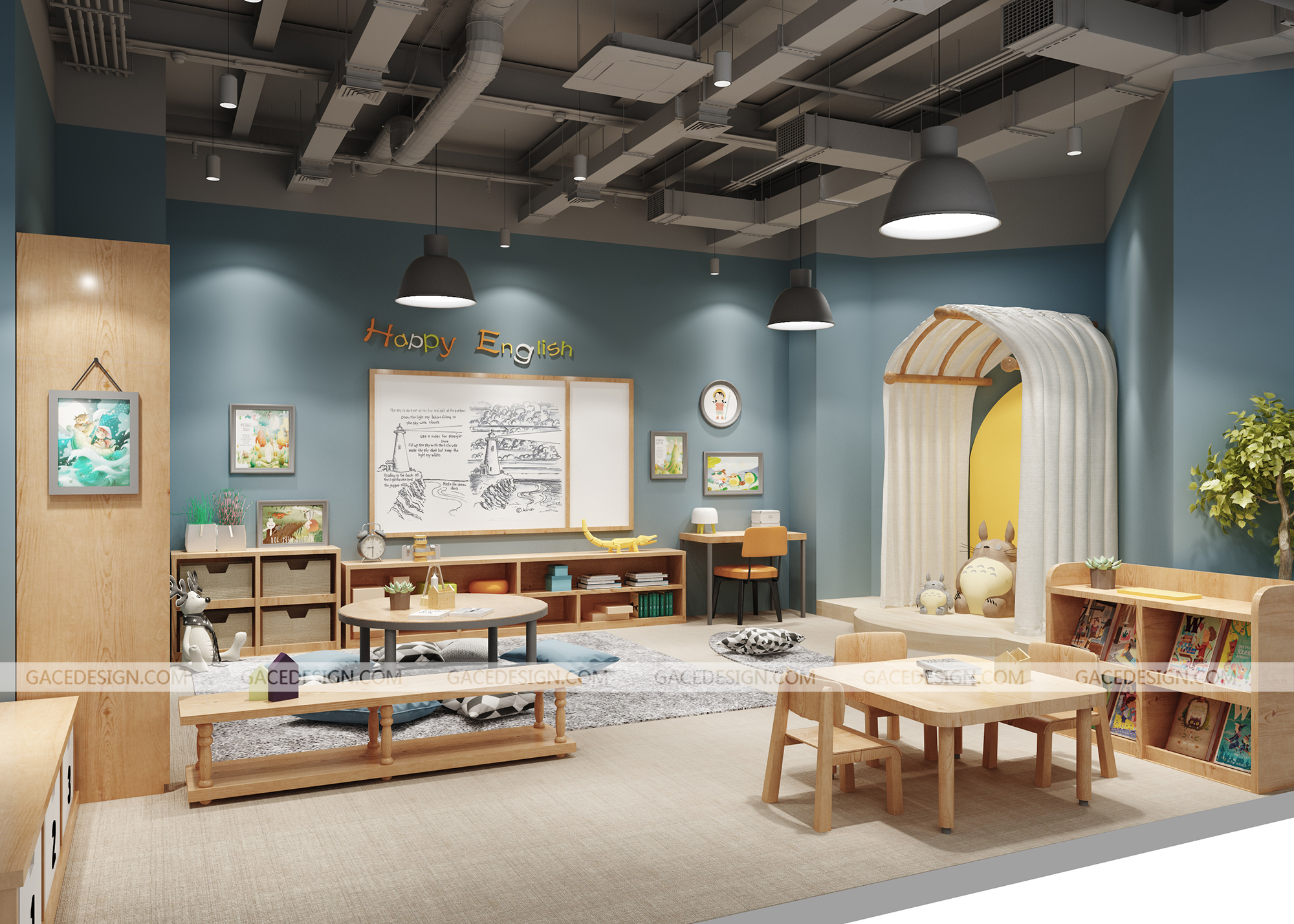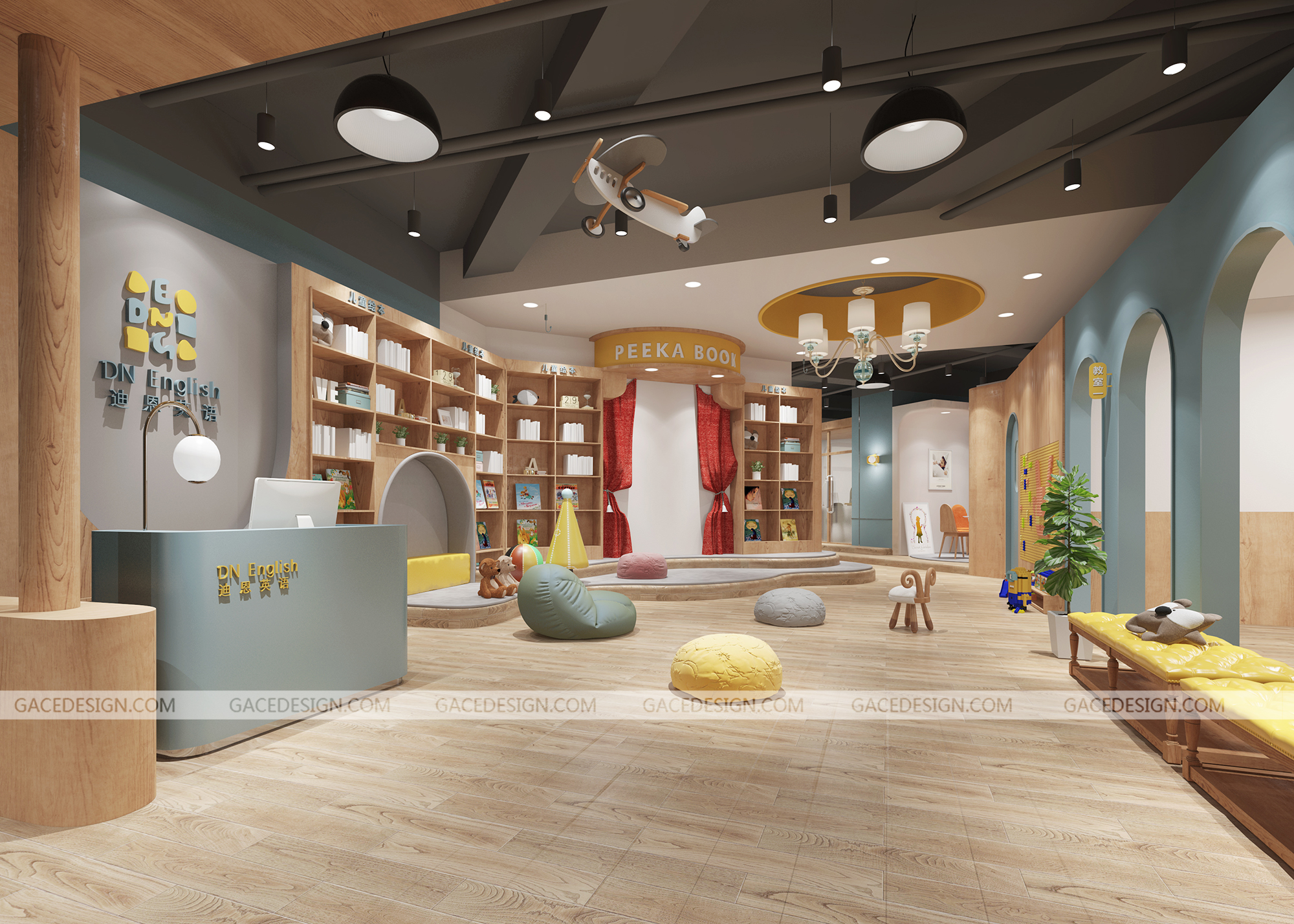 DN English迪恩英語是一家培養(yǎng)3-12歲兒童獨立閱讀和創(chuàng)意表達融合學(xué)習(xí)能力,拒絕聾啞式英語的英語教育品牌。我們?yōu)楹⒆犹峁┟朗絺€性化教育方案、科學(xué)系統(tǒng)的閱讀體系和特色課程,幫助孩子成為獨立的閱讀者、自信的表達者和優(yōu)秀的21世紀(jì)人才。設(shè)計思考主要是想跳脫傳統(tǒng)機構(gòu)和學(xué)校的那種拘束感,營造一個即有品質(zhì)又放松的空間,希望來到這里的孩子先喜歡上這里的環(huán)境,然后在環(huán)境中自然的去學(xué)習(xí)。