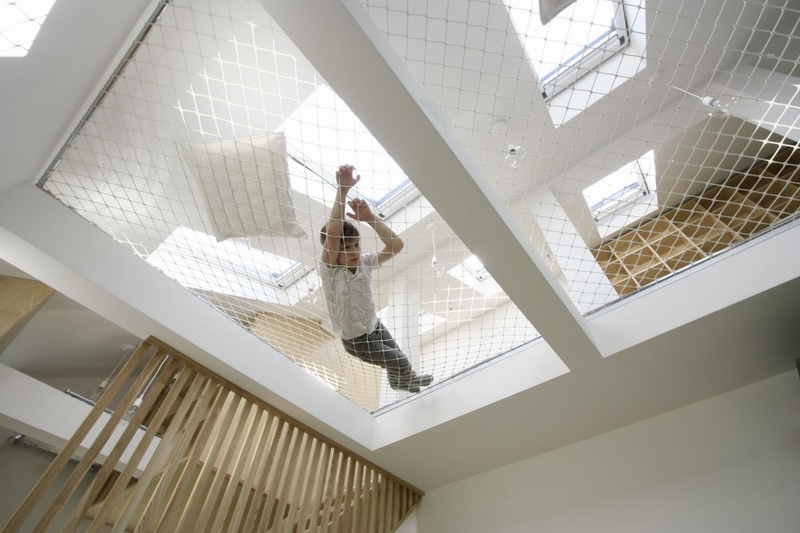 設計師把房子當成一座大玩具去設計,在設計的房子中織網交替,里面不僅有能跳可睡覺的各種網,還有可以攀爬......