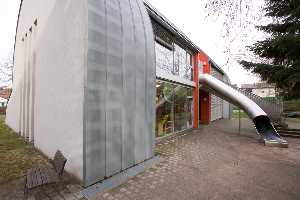 貓形幼兒園。位于德國Wolfartsweier,由知名藝術家Tomi Ungerer設計。其靈感來源于他最喜愛的動物——貓。貓嘴是門,肚子是更衣室、教室、廚房與餐廳,頭部是娛樂場,尾巴是緊急逃生通道,頭頂上還有草坪以模仿貓的皮毛。貓爪子要是滑梯就更有趣了。