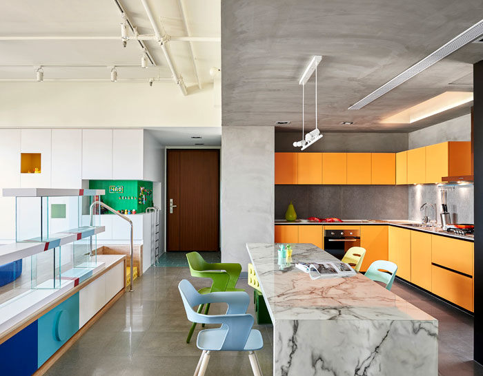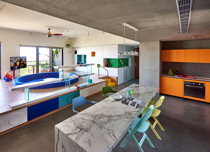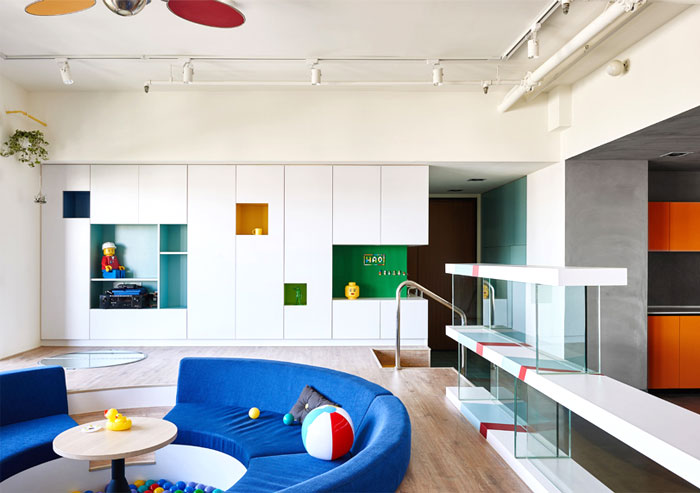這是位于臺灣高雄的一座公寓,年輕的屋主希望將原先的公寓改造,作為樂高發燒友,他們希望新的設計可以融入樂高的元素,不僅滿足了自己的喜好,也讓家中的小朋友有娛樂的空間。