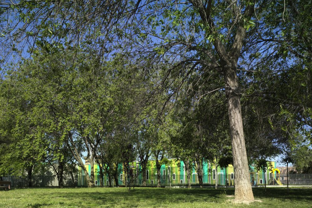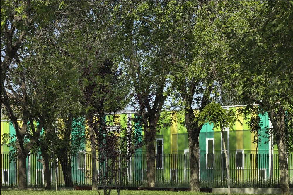 在西班牙一處風景秀麗擁有各種綠植的地方,周圍的樹木會隨著四季不同而呈現(xiàn)出不同的顏色,在美麗的環(huán)境坐落著一家幼兒園。