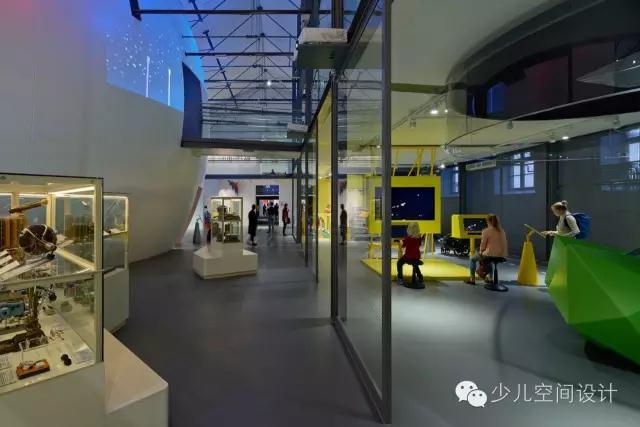 在大廳里,兩個宏大體量較天花板又上升了10米,一個體量繃緊而堅硬,另一個體量柔軟而具有波動性。它們由橋梁相連,人們通過橋梁來回走動。游客會產生“哇”的驚嘆感,并被引入充滿誘惑和想象力的迷人世界,它激發人們的欲望和好奇心來參與學習、探索和創造的過程。