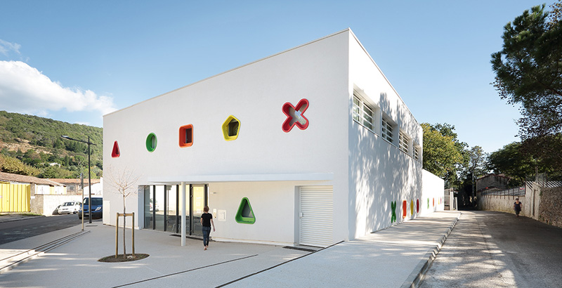 這個育兒中心是以之前的一個農(nóng)業(yè)部門改建而來,位于兩條狹窄的街道的街角之處,值得一提的是育兒中心與l’Ecureuil療養(yǎng)院建在一起:兩個建筑之間有一個漂亮的花園里面有很多栗子樹,增加了它們之間的聯(lián)系和代際關(guān)系。(幼兒園設(shè)計)