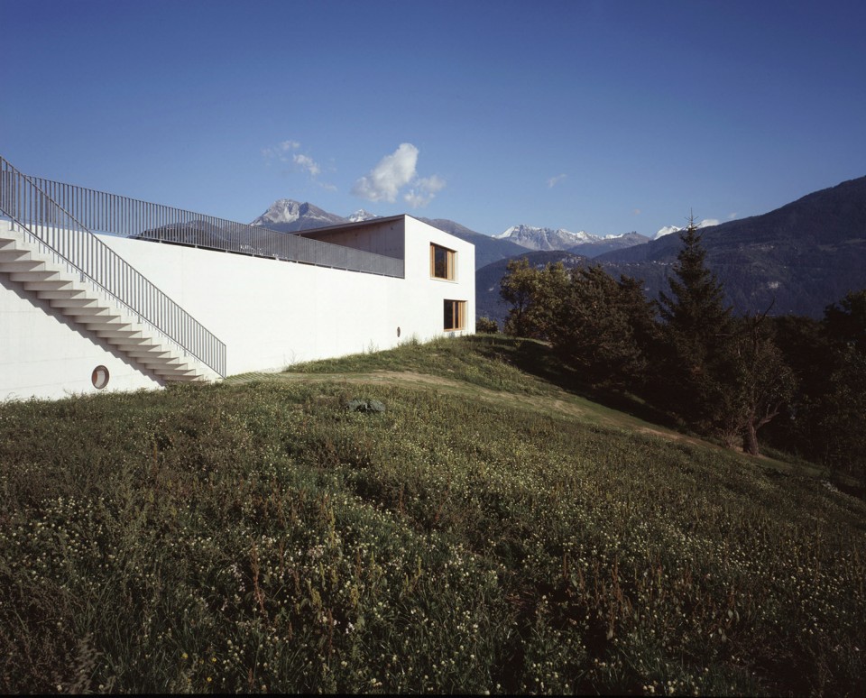 順應著山勢,學校和多功能廳互成角度地連接在一起。兩者位于同一屋檐下,極大地方便了小朋友們使用體育館。反之 當大廳內舉辦活動時,參與者也可以很便捷地使用學校的餐廳。兩層高的幼兒園位于南側稍低的地平上, 可以俯瞰整個山谷的美景非常壯觀。封閉的游樂場位于兩個樓層的中間平面上,方便到達和使用。