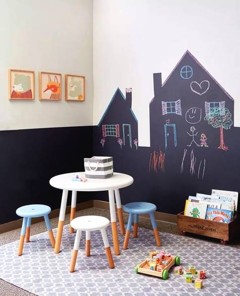 在房間做一面黑板墻,讓孩子有一個專門亂涂亂畫的位置,充分發(fā)揮潛能,激發(fā)創(chuàng)造性,不用再跟在孩子屁股后面擦墻洗磚我們可以通過學(xué)習(xí)收納整理培養(yǎng)孩子的自理能力。幫孩子把物品分類,引導(dǎo)孩子把房間里的玩具,圖書等放進不同收納筐里,教育孩子隨手歸位,衣柜也可以定制得矮一些,方便孩子自己整理。
