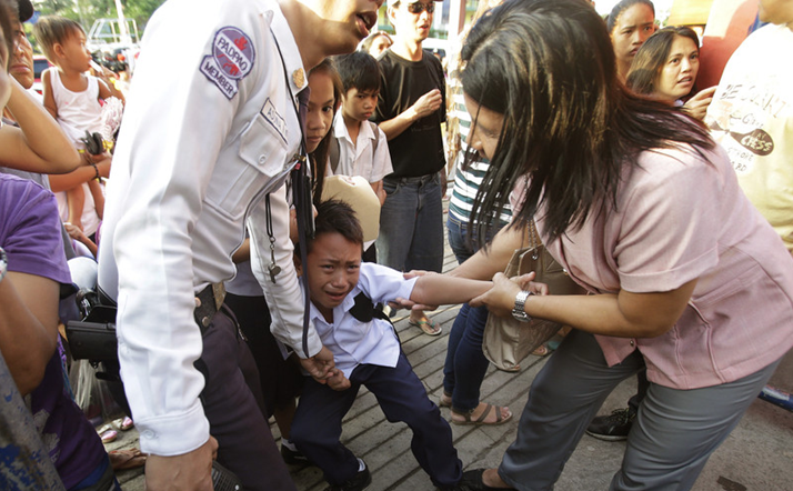 菲律賓奎松,公立小學(xué)開學(xué),一個不愿意去上學(xué)的小男孩大哭。