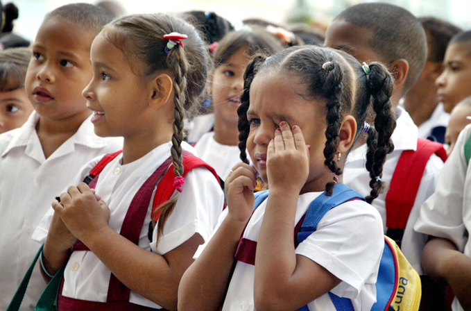 古巴哈瓦那,一個小女孩在開學(xué)第一天抹眼淚。