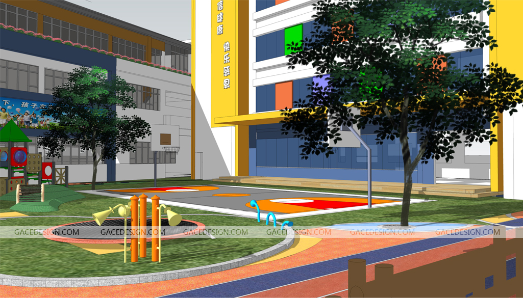 所以幼兒園的顏色主要應采用活兒童室內設計潑、大膽、輕松等的色系,如紅、橙、綠、藍、黃、白等。在幼兒園的設計時,外部應以上述的顏色作為有效的搭配,如屋頂采用紅色;墻身以白色為主,可配上橙或黃、綠、藍的線裝飾線條或以局部裝飾為之搭配。