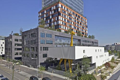 對(duì)于兒童來(lái)說(shuō),去醫(yī)院是非常恐怖的一件事,但在巴黎,新的“長(zhǎng)頸鹿兒童看護(hù)中心”卻能讓孩子們心頭的恐懼消散。Hondelatte Laporte事務(wù)所設(shè)計(jì)的這座建筑帶有很強(qiáng)的趣味性,是智能建筑設(shè)計(jì)的典范。該事務(wù)所介紹說(shuō),看護(hù)中心變成了一個(gè)講故事的地方,也是城市叢林的一個(gè)隱喻。動(dòng)物和樹(shù)木將建筑與自然和運(yùn)動(dòng)聯(lián)系起來(lái)。“長(zhǎng)頸鹿”是一道標(biāo)示,無(wú)論從哪個(gè)角度望過(guò)來(lái)都清晰可見(jiàn)。要進(jìn)入看護(hù)中心,人們必須穿越“長(zhǎng)頸鹿”的四條“腿”,看上去十分獨(dú)特。一只“北極熊”正攀爬在一側(cè),一群“瓢蟲(chóng)”則穿越立面,活靈活現(xiàn),非常有趣。