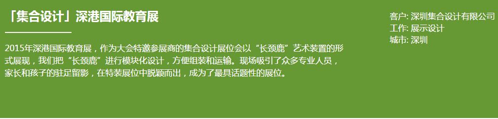 集合設(shè)計(jì)是一家專(zhuān)注于學(xué)校、早期兒童教育、校外培訓(xùn)等教育文化品牌的專(zhuān)業(yè)設(shè)計(jì)公司。電話(huà):0755-22219851/手機(jī):15811828710 Harvey 專(zhuān)注少兒空間設(shè)計(jì)八年,充滿(mǎn)愛(ài)心和創(chuàng)意的少兒空間設(shè)計(jì)是我們擅長(zhǎng)做的事情.項(xiàng)目遍布全國(guó),為學(xué)校、幼兒園、培訓(xùn)機(jī)構(gòu)、文化機(jī)構(gòu)提供完整空間及平面設(shè)計(jì)解決方案,服務(wù)眾多著名品牌,是少兒相關(guān)項(xiàng)目設(shè)計(jì)的專(zhuān)業(yè)機(jī)構(gòu)。公司服務(wù)內(nèi)容包括:品牌咨詢(xún)、空間設(shè)計(jì)、平面設(shè)計(jì)、軟裝配飾、施工監(jiān)理。